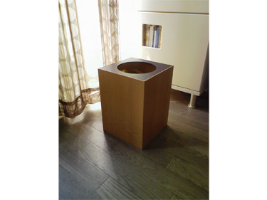 | 写真と実物との違和感 | 大きさは一般的なゴミ箱のサイズで、木の為か若干重く感じました。 全体の色はメープルで蓋の部分が濃いブラウンなので落ち着いた印象でどんな部屋にも合いそうです。 |